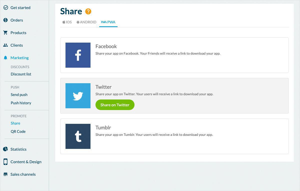 Met GoodBarber hebt u toegang tot verschillende Opties voor Delen op Sociale Media.