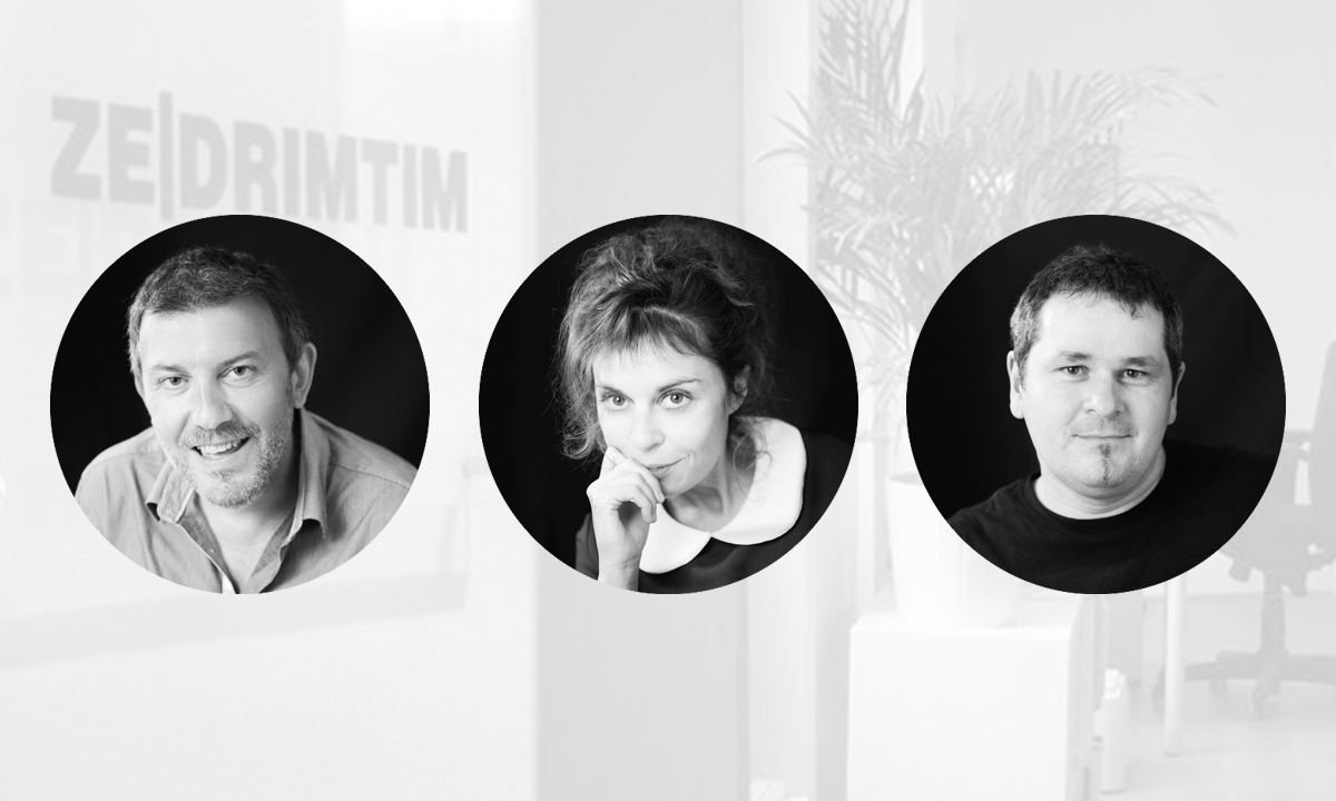Zedrimtim is een algemeen agentschap voor drukwerk en digitale communicatie, opgericht in 2004 en gevestigd in Parijs. We zijn 3 partners en we werken met z'n drieën in het bureau, een hecht creatief team dat ons in staat stelt om ons voortdurend aan te passen. We delen creatieve, technische en administratieve rollen.