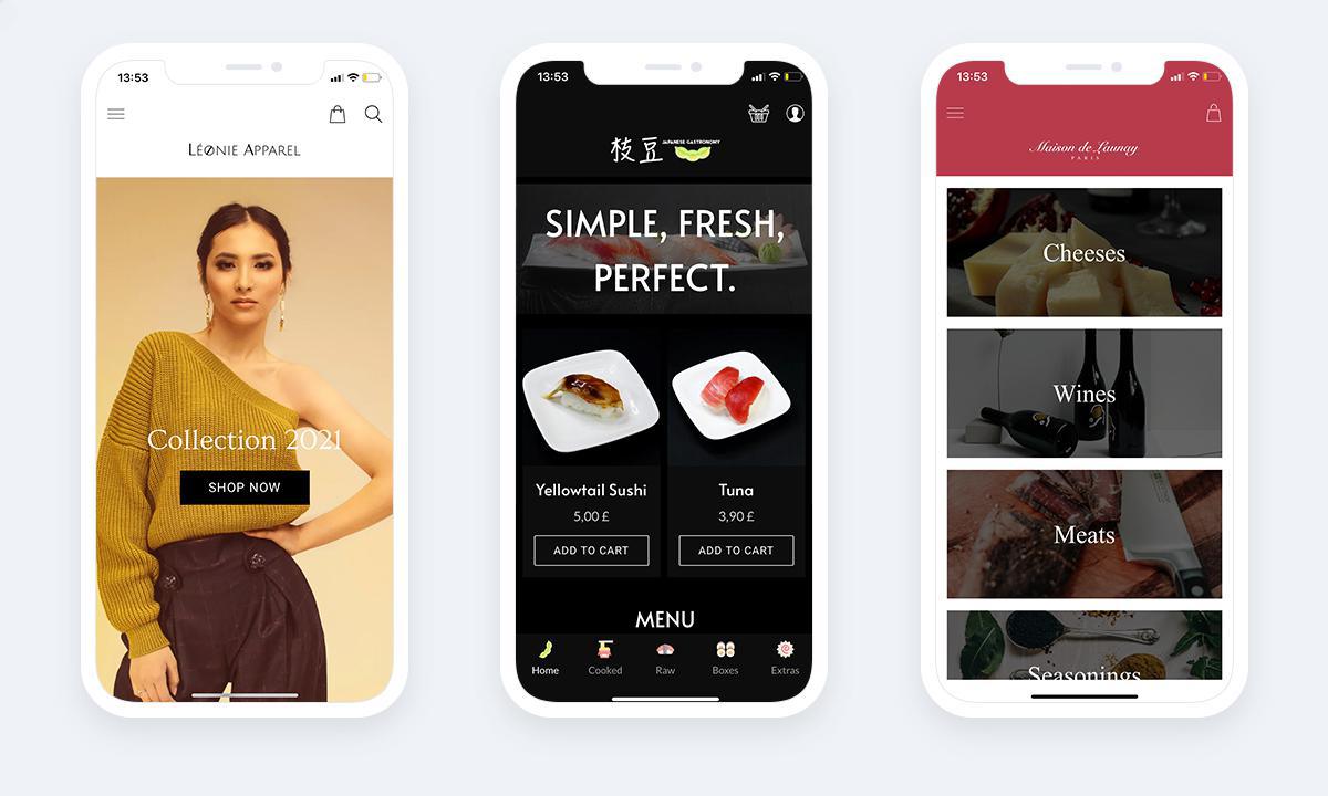 - Tot slot is de Maison de Launey app de online winkel van een Parijse delicatessenwinkel. De fysieke winkel is bij de vaste klanten vooral bekend vanwege de wijnkleurige voorkant. Voor de eigenaars van het merk was het van vitaal belang dat deze emblematische kleur aanwezig was in hun Mijn App. Om de achtergrond van de app niet te donker te maken, werd de Kleur toegepast op de Achtergrond van de Kop, met behulp van een Medium sjabloon, zodat deze in alle secties van de app echt aanwezig was.