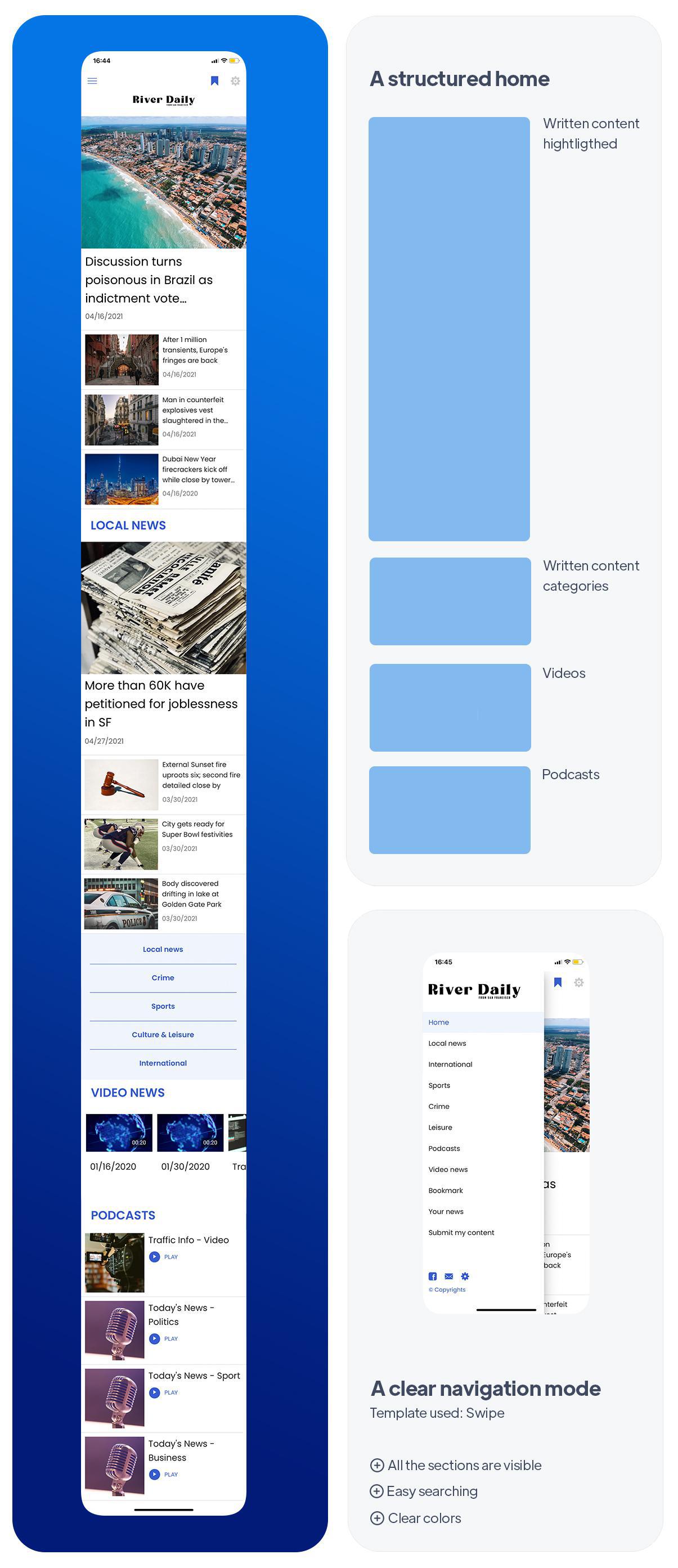 De River Daily nieuwsapp is gemaakt voor een regionale nieuwskrant. De app richt zich op zogenaamde "traditionele" lezers die gewend waren of nog steeds zijn om gedrukte media te consumeren. Om deze lezers te behouden en de nieuwe generatie aan te trekken, besloot de krant te diversifiëren door verschillende soorten inhoud aan te bieden, zoals korte Video's en Podcasts.