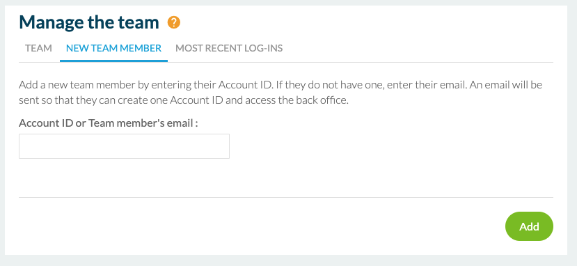Eerst moet u naar de Back-Office van de betreffende app gaan door dit pad te volgen: Instellingen => Overige Instellingen => Team => Nieuwe medewerker.