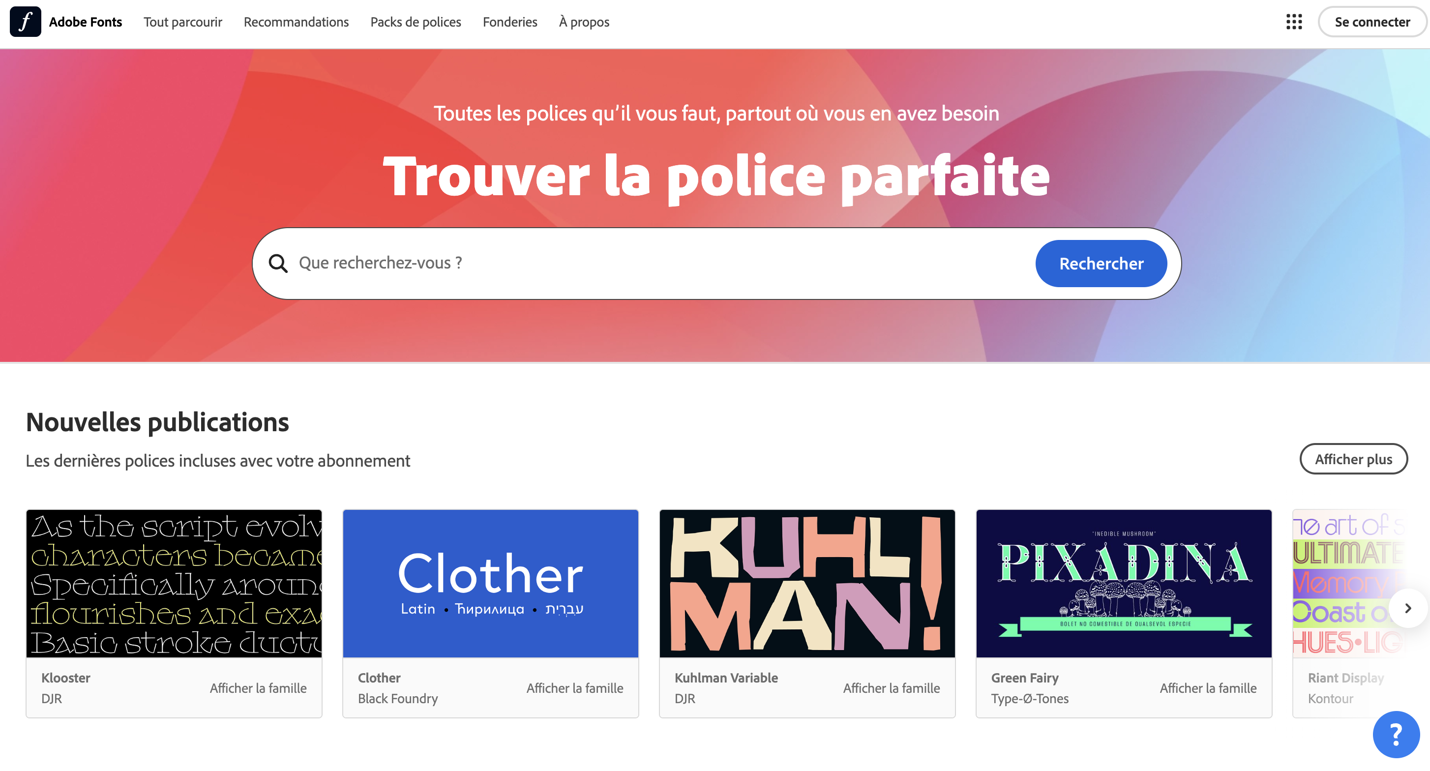 Adobe Fonts Inbegrepen als onderdeel van het Creative Cloud-abonnement, biedt Adobe Fonts toegang tot duizenden lettertypes van professionele kwaliteit, klaar voor gebruik in uw web- en native projecten, zonder extra licentievereisten.