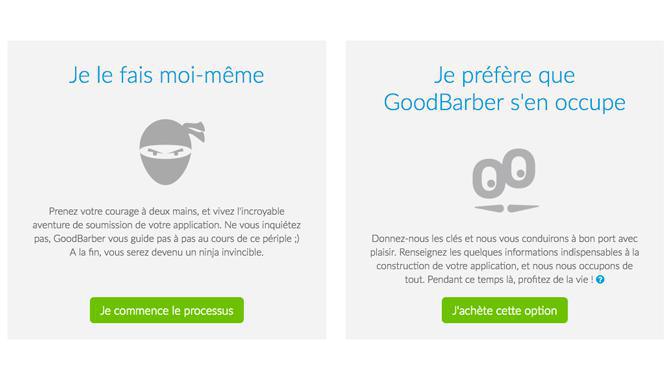 Laten we nu de oorspronkelijke vraag beantwoorden: de "GoodBarber zorgt ervoor" service is er om u te helpen. In het kort komt het erop neer dat u de teugels uit handen geeft aan onze teams voor het indienen van uw iOS en/of Android app, wetende dat wij uw Apple ontwikkelaarsaccount en/of uw Google Play uitgeversaccount zullen gebruiken. U kunt voor deze service voor uw app kiezen als u geen technologie-expert bent en ervoor wilt zorgen dat het indienen van uw app soepel verloopt, of als u gewoon tijd wilt besparen.