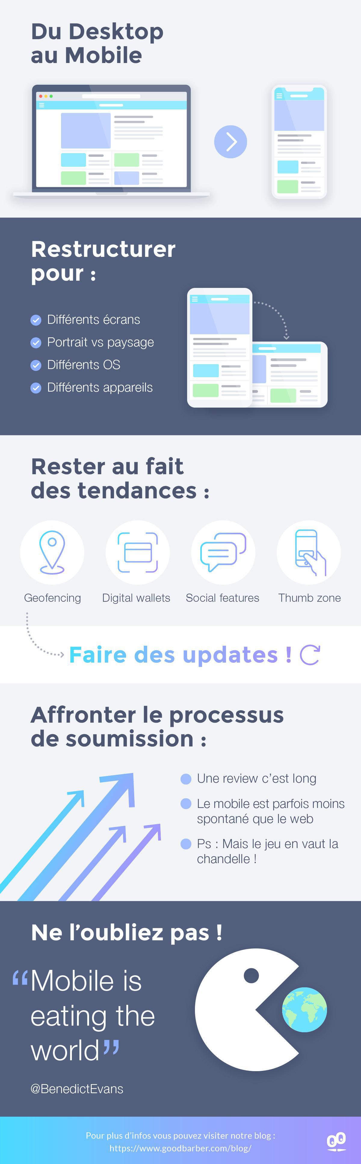 Een applicatie moet meer zijn dan alleen een versie van uw product op de desktop. Wanneer u een app maakt, moet u uitsluitend mobiel denken. Vandaag de dag lanceren sommige bedrijven zelfs eerst op mobiel, voordat ze een fysiek bedrijf lanceren. Dit geeft u een idee van de omvang van het fenomeen, mocht u nog twijfelen ;)