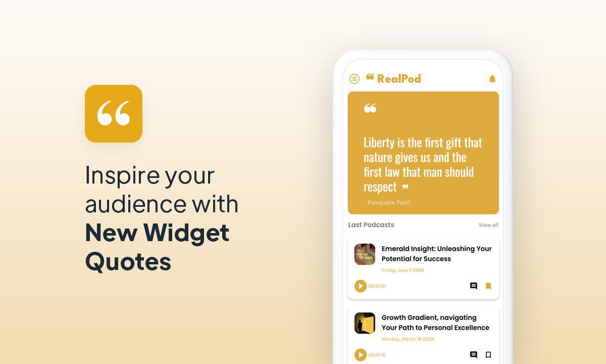 De Quotes Widget voegt een motiverend, gepersonaliseerd tintje toe aan de startpagina van je applicatie. Elke dag wordt er een inspirerend citaat weergegeven uit een door jou samengestelde lijst, wat de gebruikerservaring verrijkt.