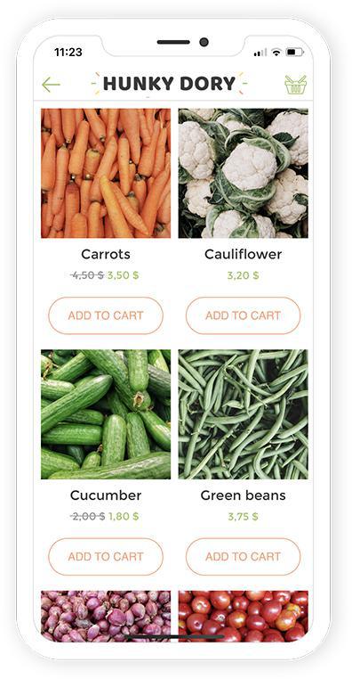 De app kan voor u ook een goed Medium zijn om de producten die u met voorrang wilt verkopen onder de aandacht te brengen, zoals uw producten met een korte houdbaarheidsdatum om verspilling te voorkomen, of uw verse seizoensproducten. Waarom niet ook nieuwe Producten aan uw klanten aanbieden, in de vorm van verrassingsmanden waarmee u verschillende maaltijden kunt bereiden, zodat u de producten die u wilt verkopen als prioriteit kunt selecteren en tegelijkertijd het leven voor hen gemakkelijker kunt maken. Het is een win-winsituatie!