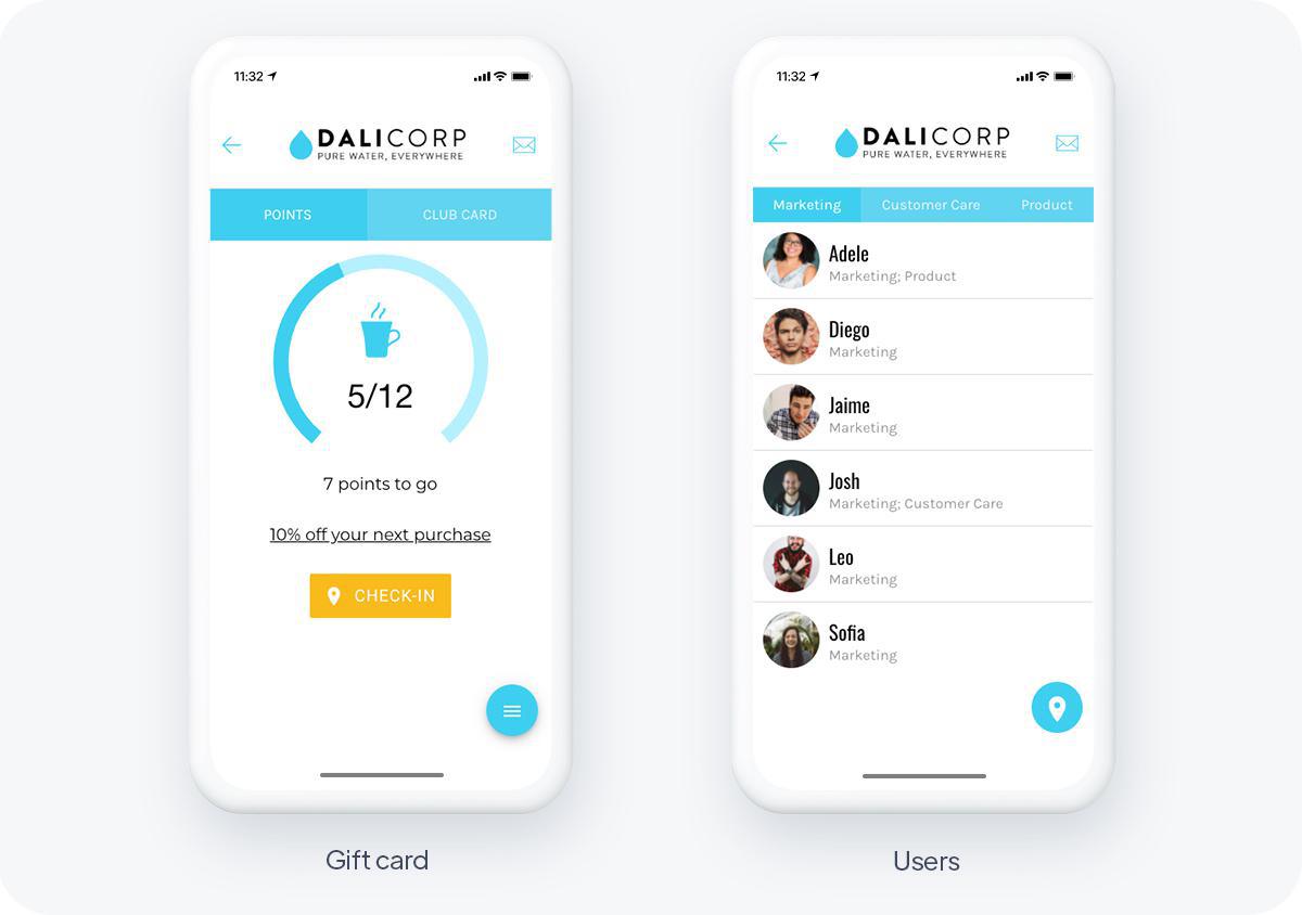 Dalicorp is de interne communicatieapplicatie van een innovatief bedrijf dat gespecialiseerd is in de distributie van waterflessen en dat op een ecologisch verantwoorde manier werkt met meer respect voor de planeet. De doelstellingen van deze applicatie zijn duidelijk: medewerkers informeren, binden en betrekken .