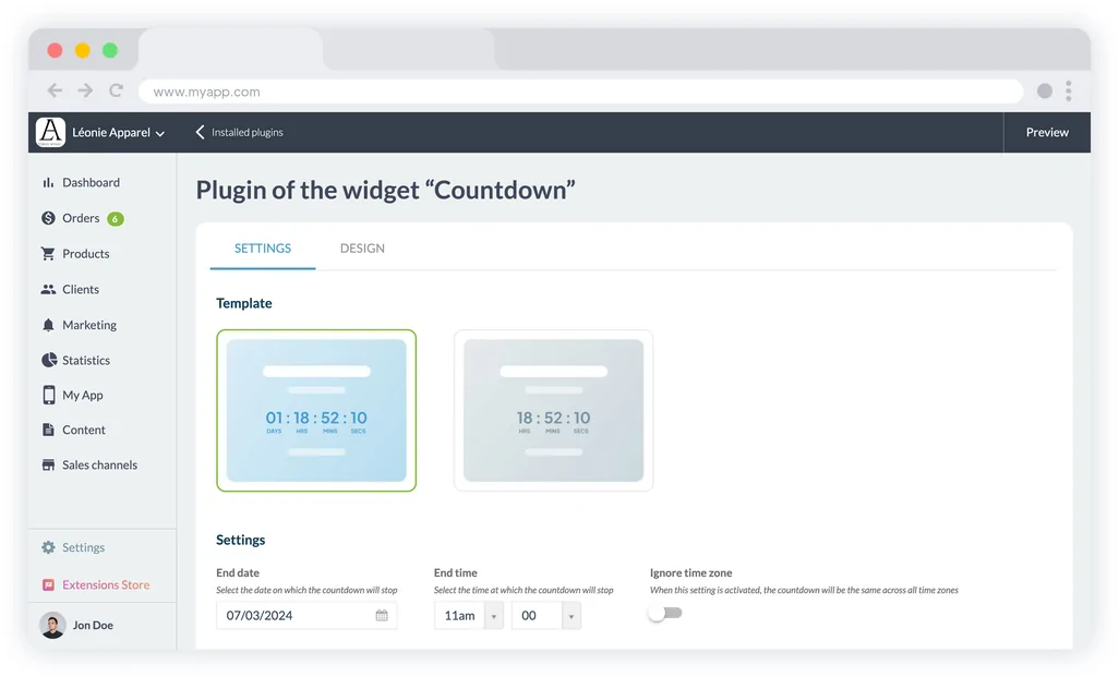 De Widget Countdown integreren in uw GoodBarber toepassing is een intuïtief proces. Ga naar de Extension Store en selecteer Countdown. Volg de eenvoudige instructies om de widget te configureren, het Ontwerp aan te passen en de perfecte timing voor uw evenementen of aanbiedingen in te stellen. In slechts een paar klikken is uw app uitgerust met een krachtig hulpmiddel om vanaf het eerste moment de aandacht te trekken. U kunt de stijl van uw Aftellen aanpassen aan het uiterlijk van uw app, zodat uw merkidentiteit versterkt wordt.