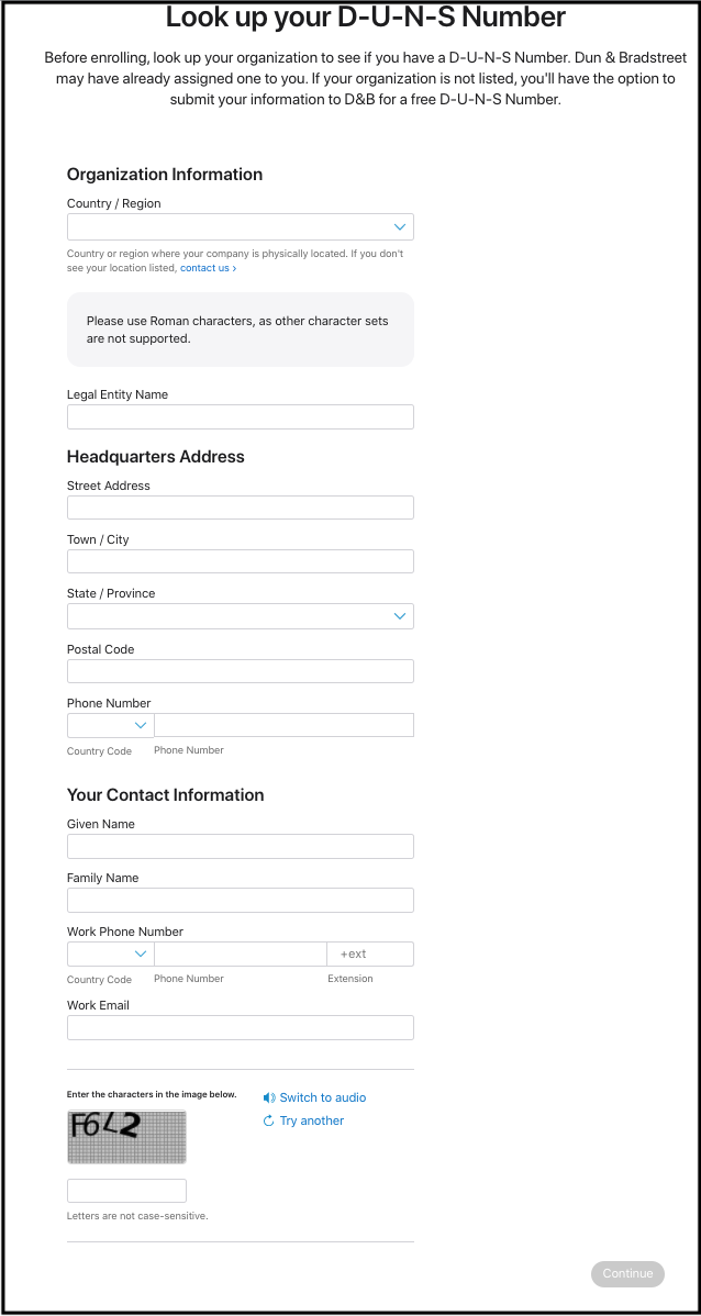 Als uw klant zijn D-U-N-S niet kent, kunt u dit via deze link controleren: https://developer.apple.com/enroll/duns-lookup/#!/search
