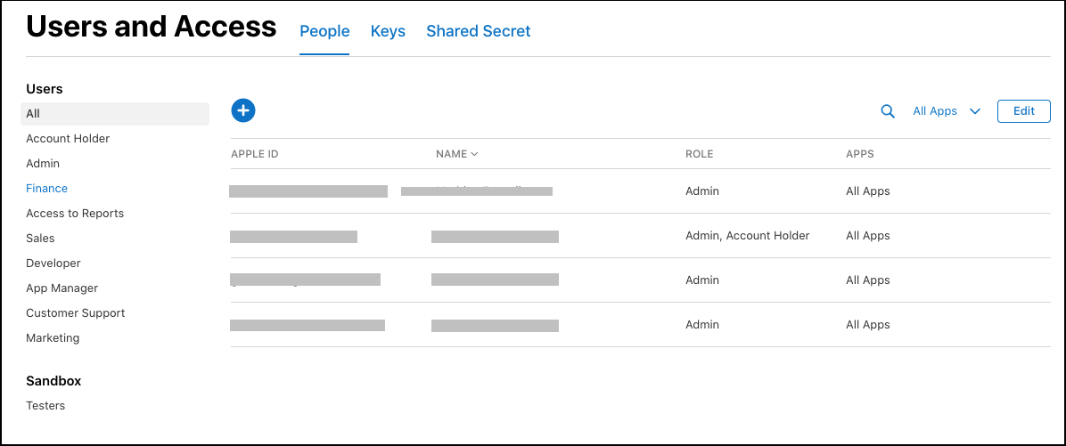 Zoals hierboven vermeld, wordt AppStoreConnect gebruikt voor het publiceren en updaten van Mijn App. Aangezien zijn account een "Organisatie" account is, zal hij u aan zijn Team kunnen Toevoegen. Dit zal het voor u gemakkelijker maken om Publiceer en Updates voor hem te beheren.