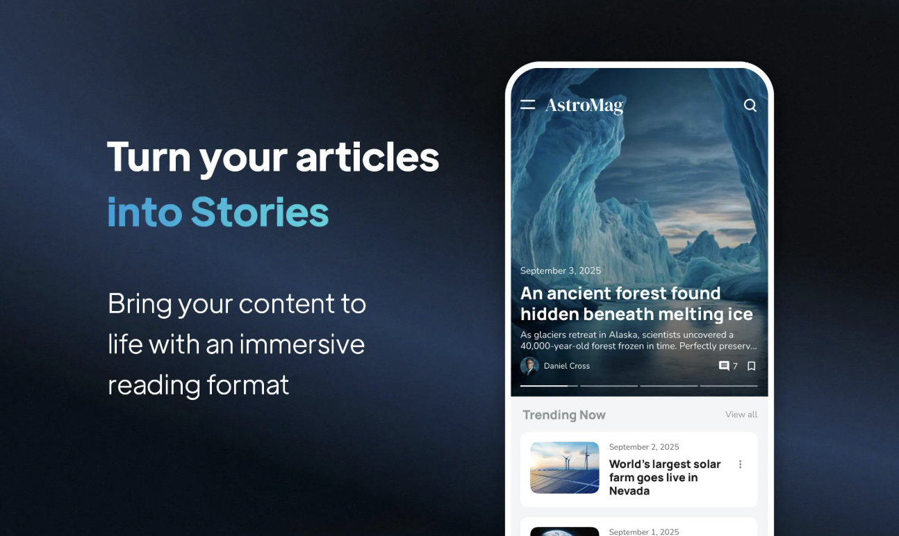 Met de Story Template, beschikbaar als artikelwidget voor de Home, kunt u deze vertrouwde en boeiende ervaring nu rechtstreeks in uw app aanbieden.