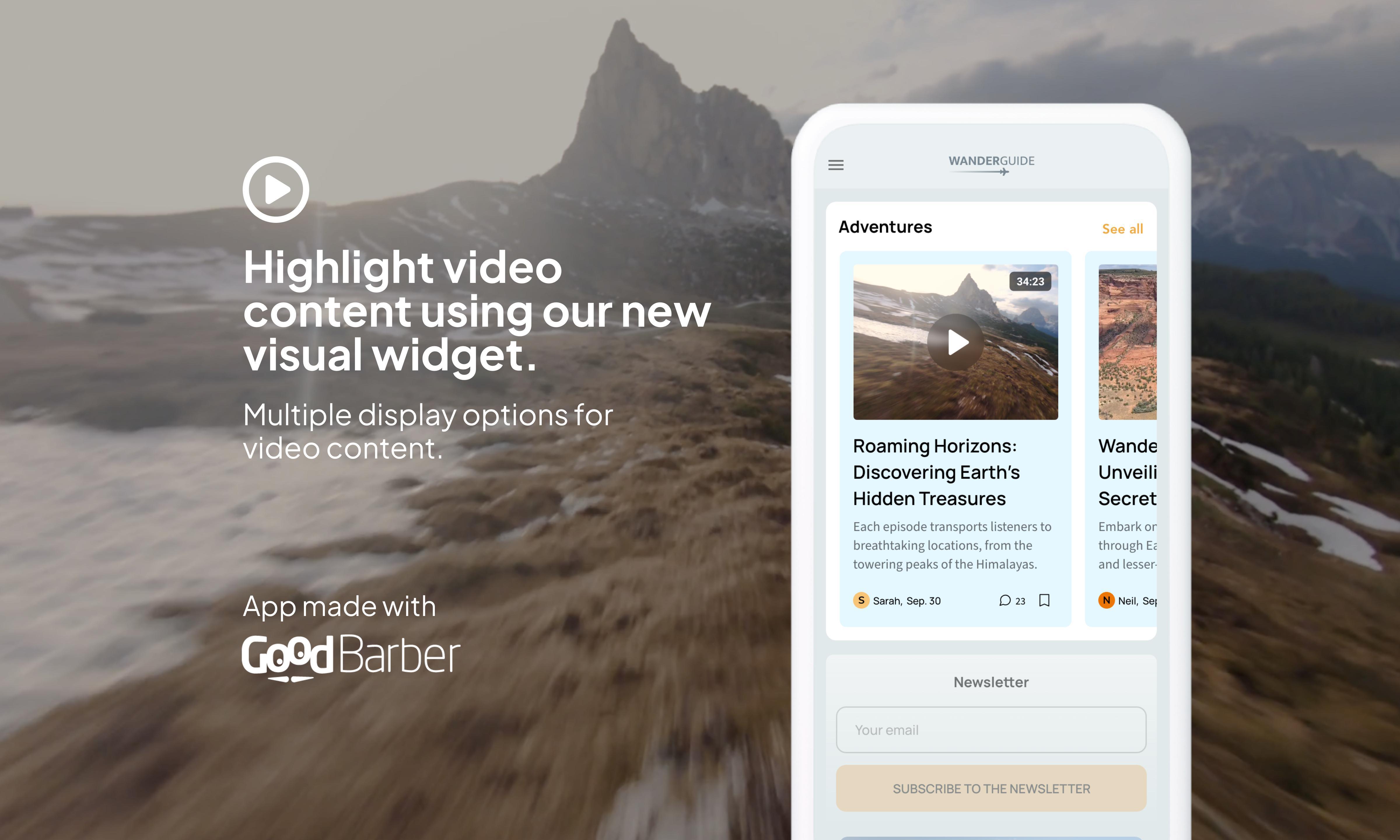 Ga naar uw backoffice en selecteer Mijn App > Structuur in het Menu. Klik op de Startpagina secties en selecteer de optie voor uw Video's Visuele Kaarten Widget uit de Overige Sjabloonkeuzes. U kunt nog steeds genieten van de resultaten!